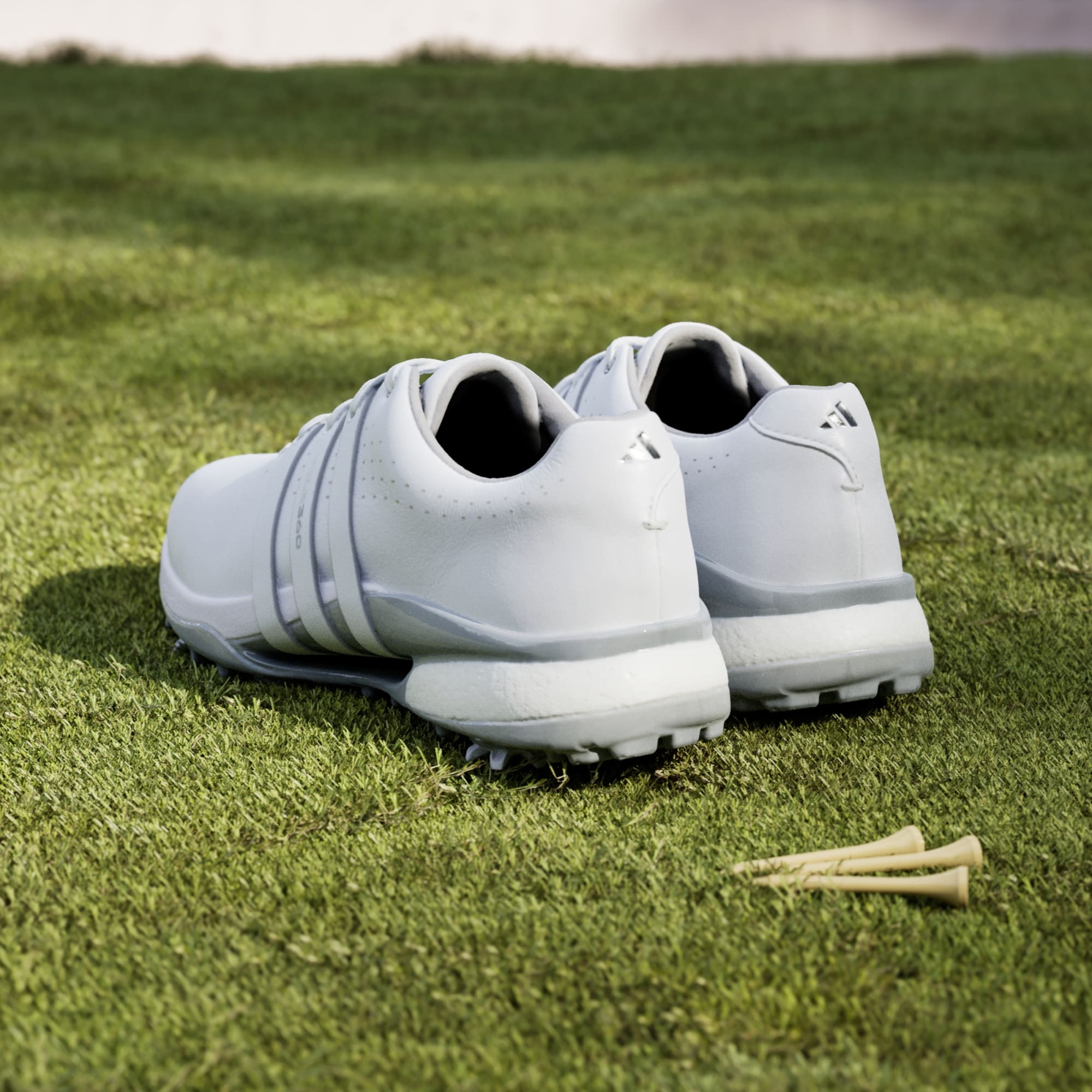 Elevate your game with golf shoes that wrap your feet in premium materials and next-generation performance for the confidence to play your very best. A waterproof leather upper with 360Wrap supports long-lasting, distraction-free comfort as you focus on the game. A combination of adidas Lightstrike midsole cushioning and JET BOOST in the heel complement a seven-cleat outsole for a stable stance and accurate drives. Swing with confidence as you climb the leaderboard in style.