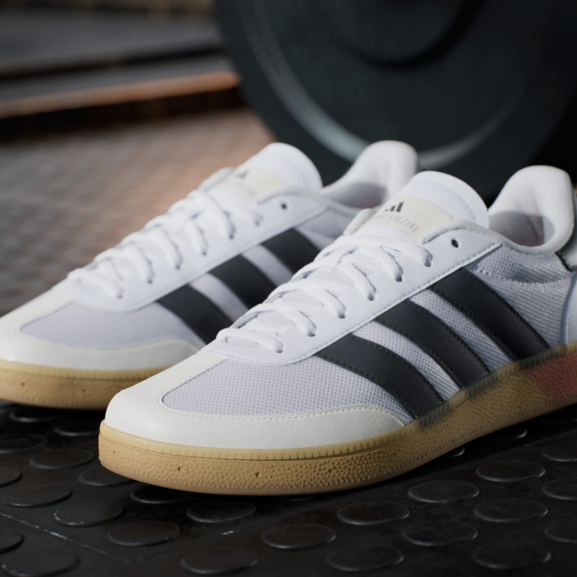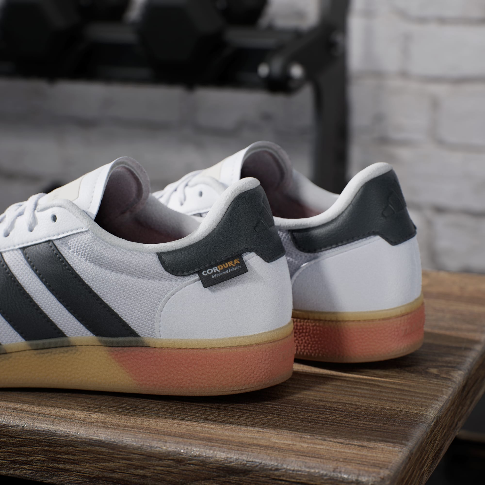These adidas training shoes move seamlessly from the weight room to the street. A dual-density midsole with REPETITOR foam provides a stiffer feel in the heel for added stability during lifts. The CORDURA® nylon upper offers flexibility and durability. A Traxion outsole grips the ground for quick cuts and sprints.
