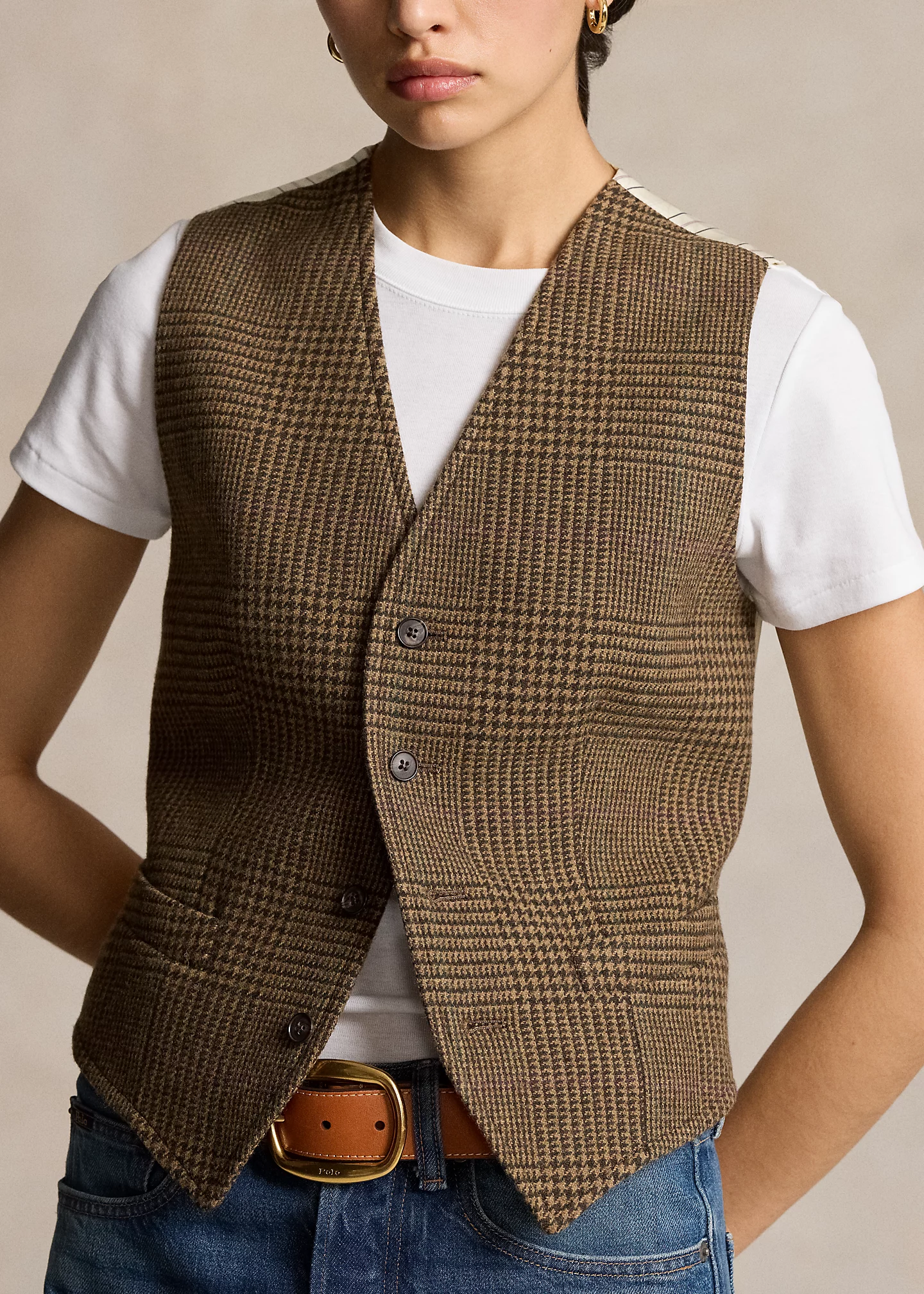 - Body: 53% wool, 23% cotton, 20% polyamide, 4% other fibers. Back panel: 52% viscose, 48% acetate. Lining: 100% viscose.