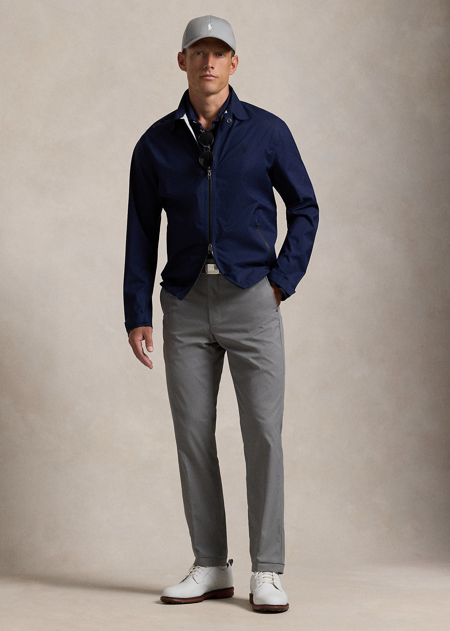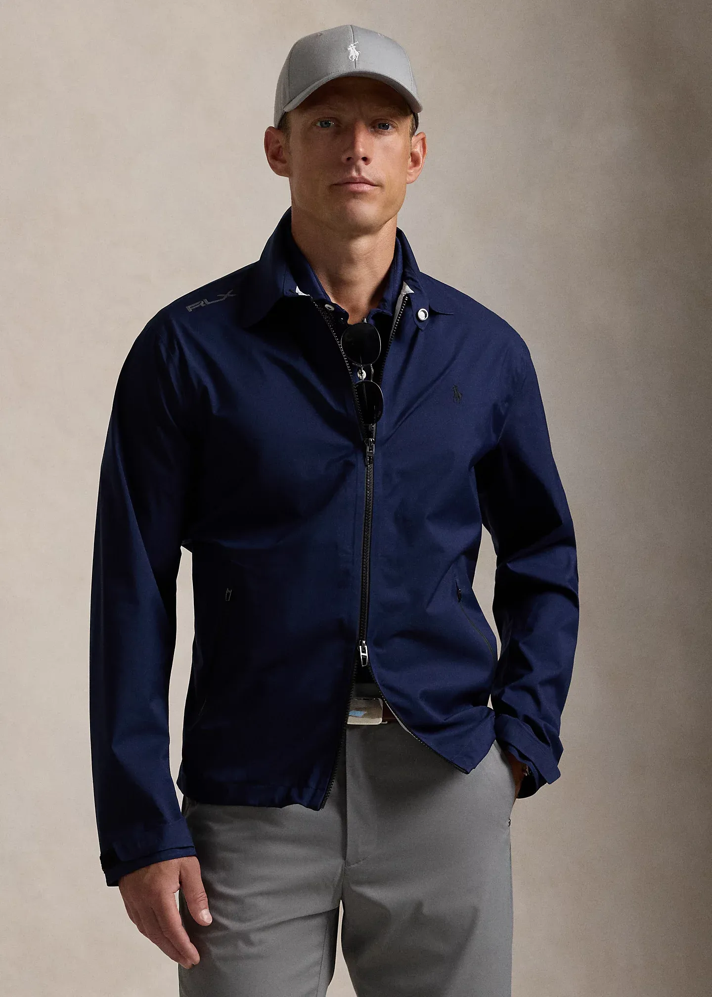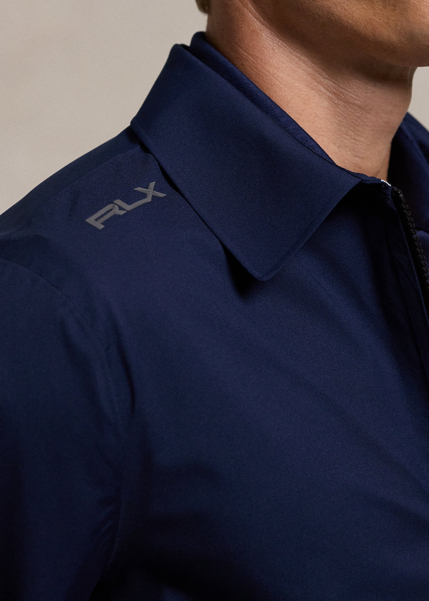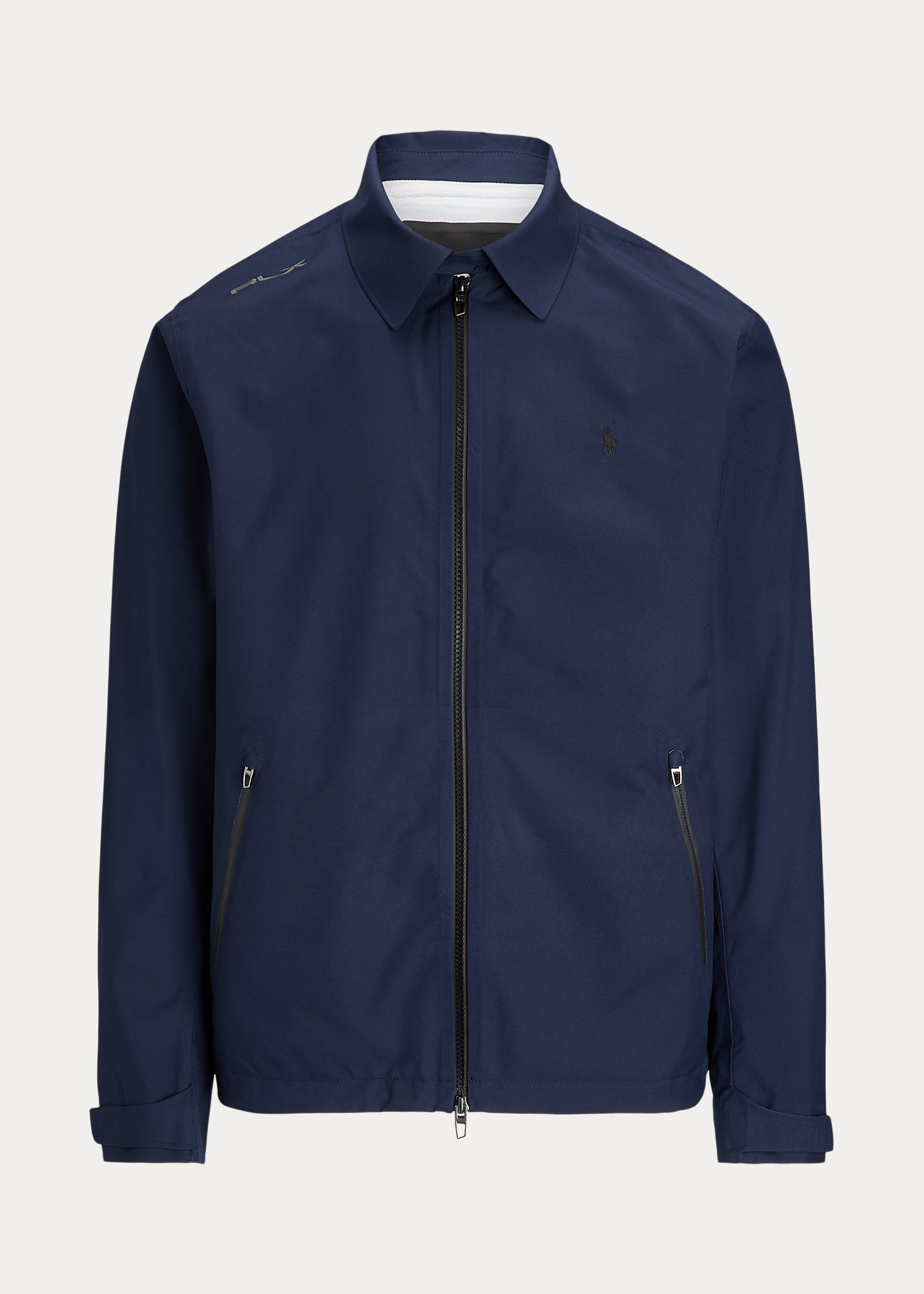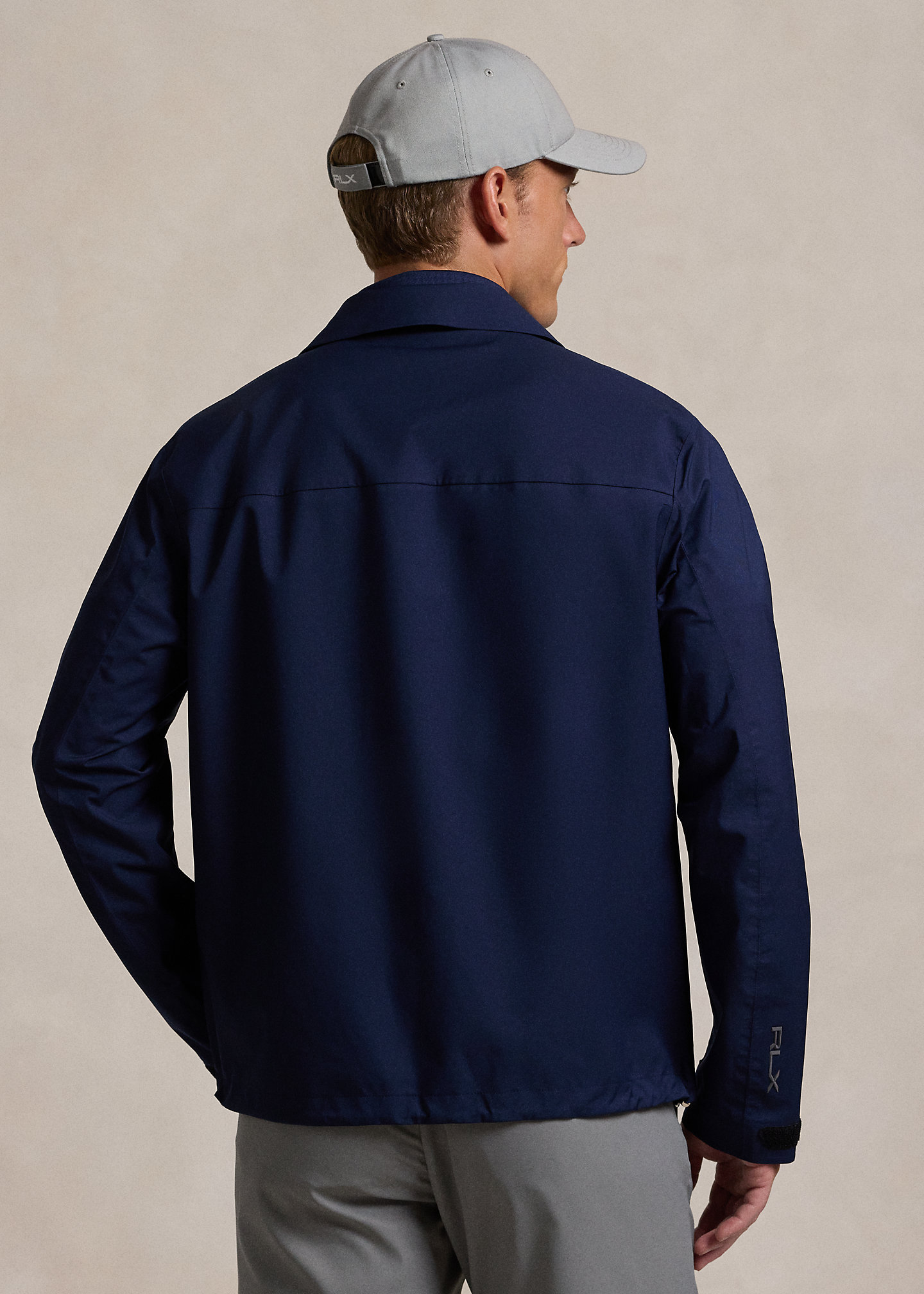 - Long sleeves. Adjustable hook-and-loop tabs at the cuffs. "RLX" logo printed at the right shoulder and right cuff.