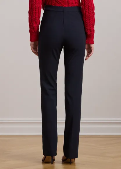 - High rise. Straight-leg silhouette. Intended to hit below the ankle.
