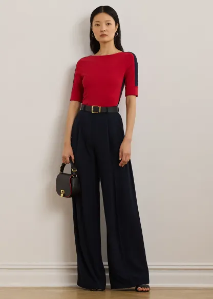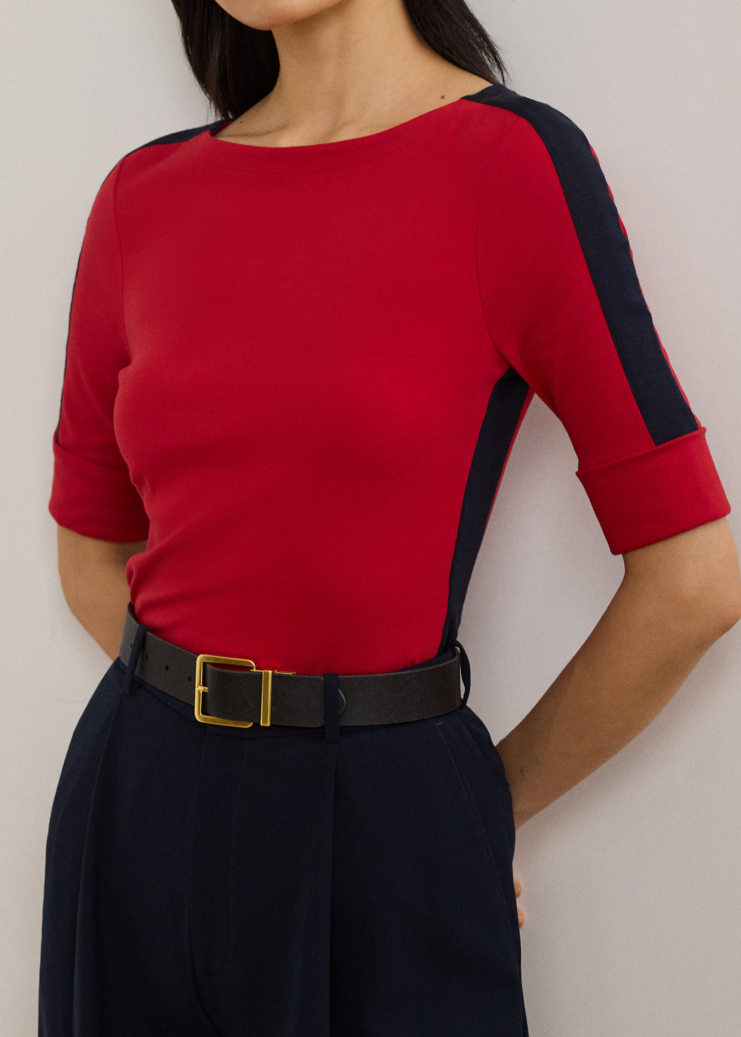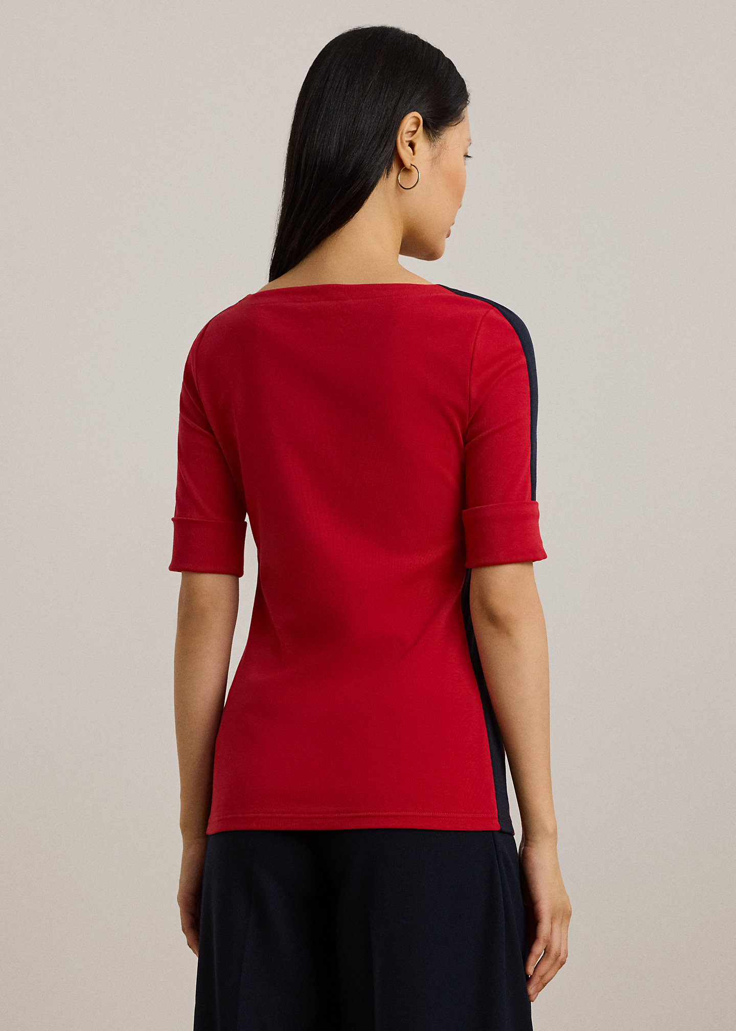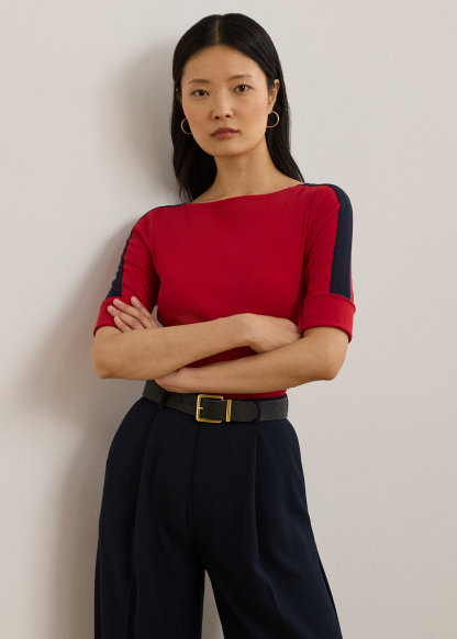 Two-Tone Stretch Cotton Elbow-Sleeve Tee