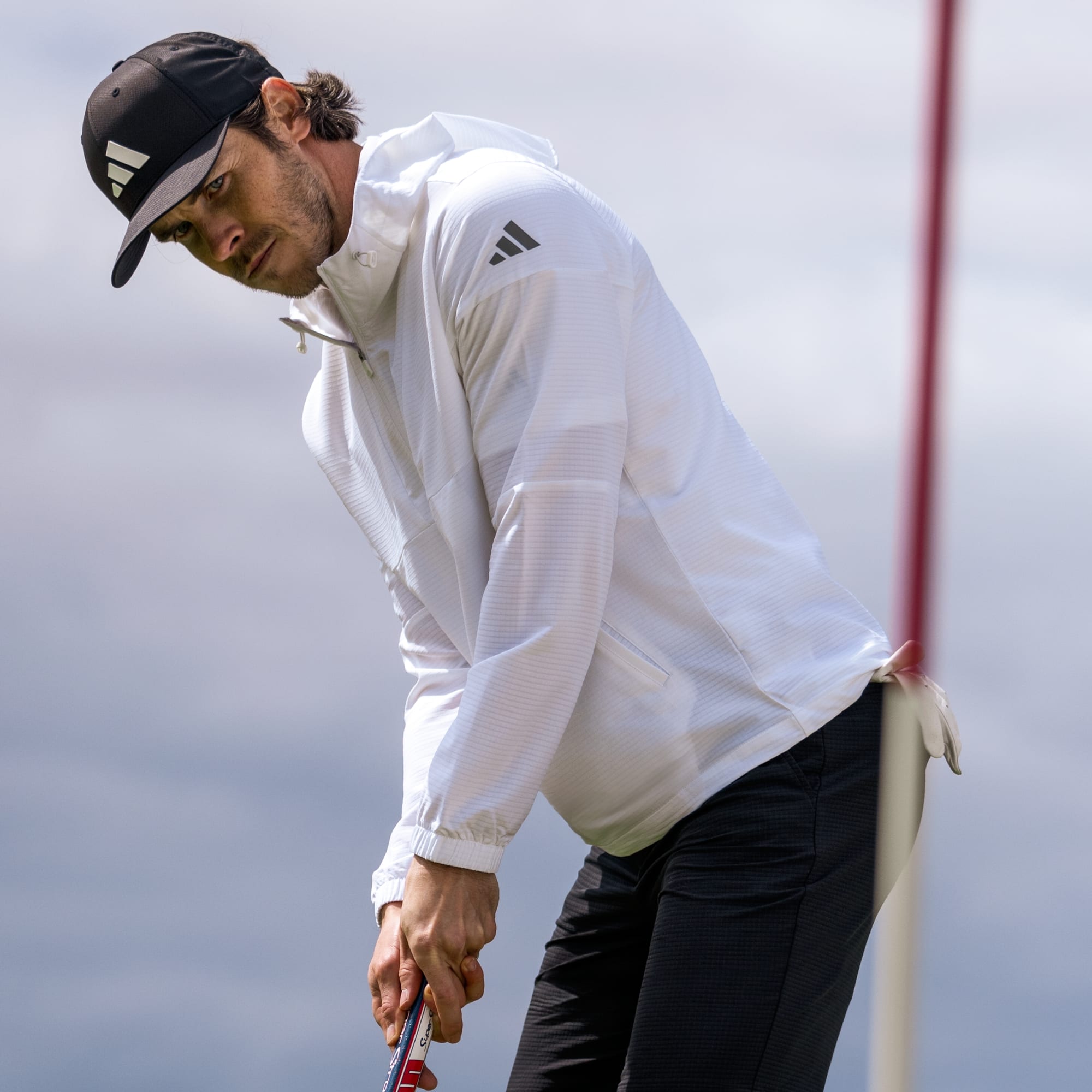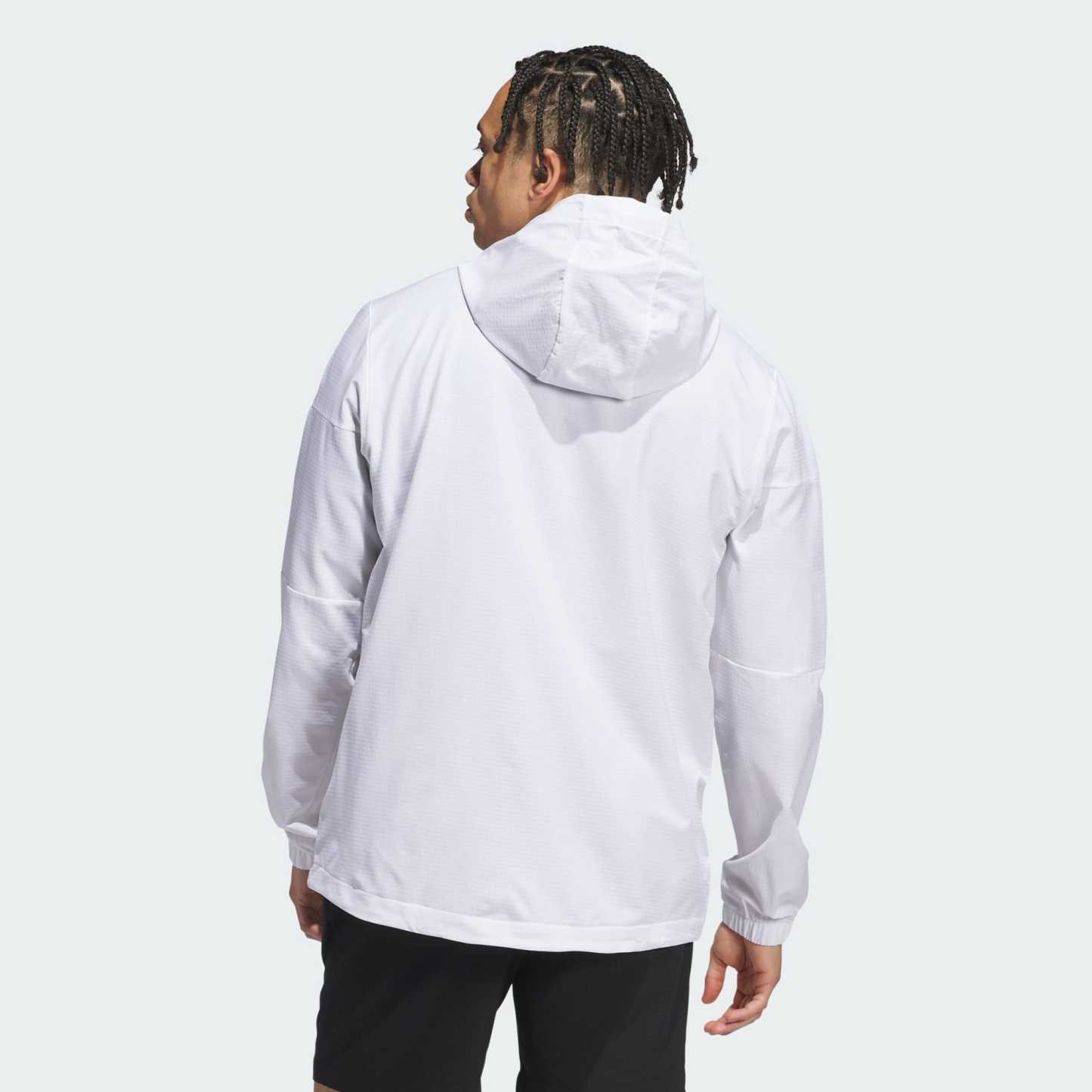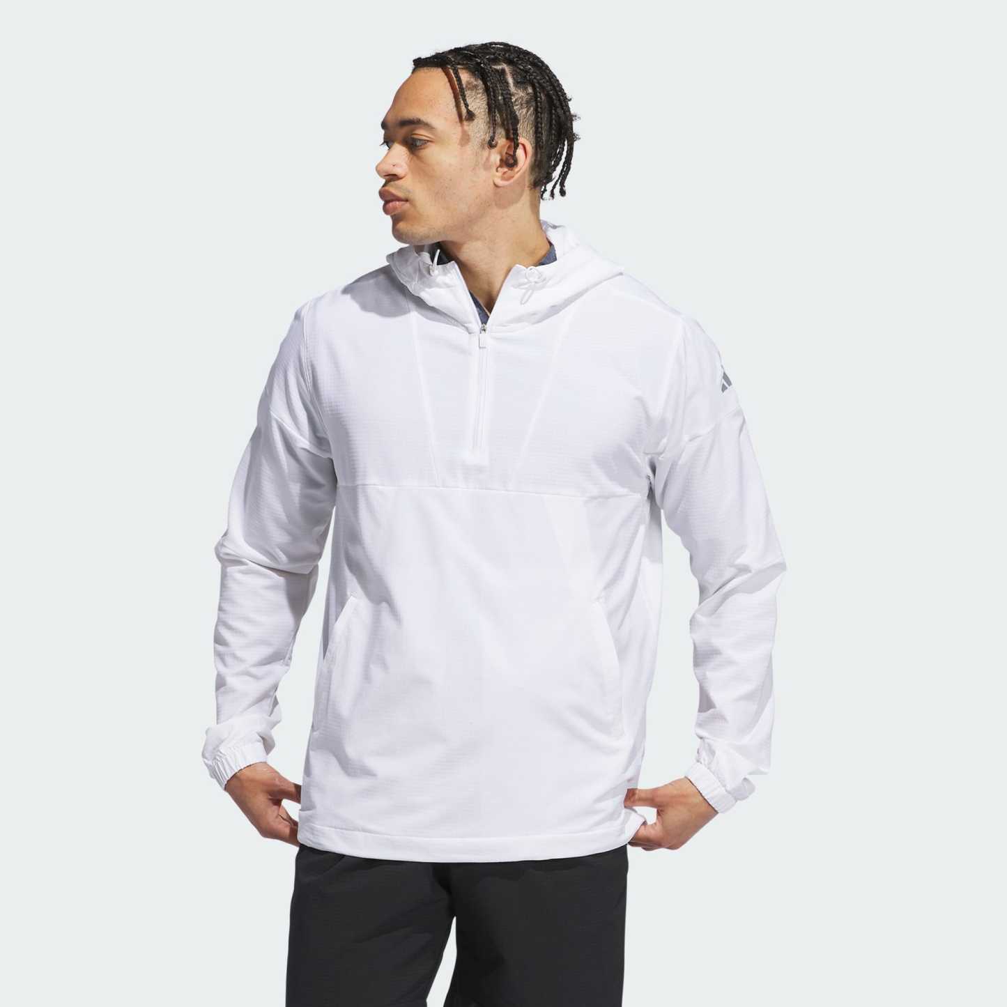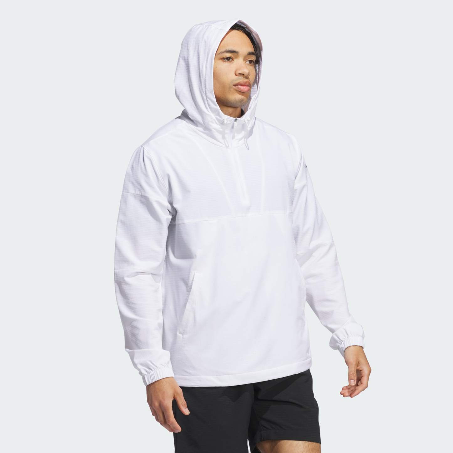 Unpredictable weather is part of the game. Be prepared for it in this adidas golf pullover. Stretch fabric with a fleece back gives you a full range of motion plus added warmth in cool conditions. A cinchable hood and elastic cuffs seal out the chill. From casual rounds to tournament play, the clean style has you covered.