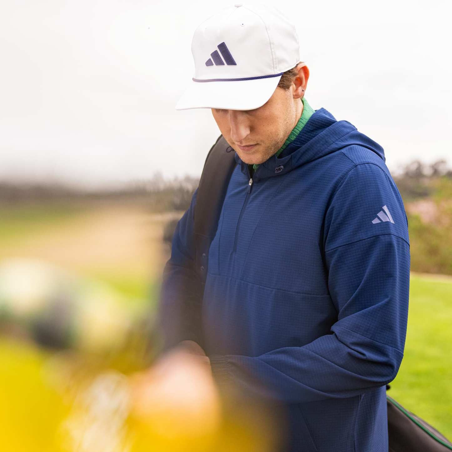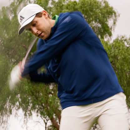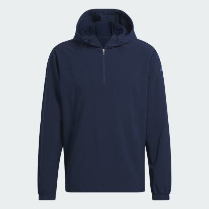 Unpredictable weather is part of the game. Be prepared for it in this adidas golf pullover. Stretch fabric with a fleece back gives you a full range of motion plus added warmth in cool conditions. A cinchable hood and elastic cuffs seal out the chill. From casual rounds to tournament play, the clean style has you covered.