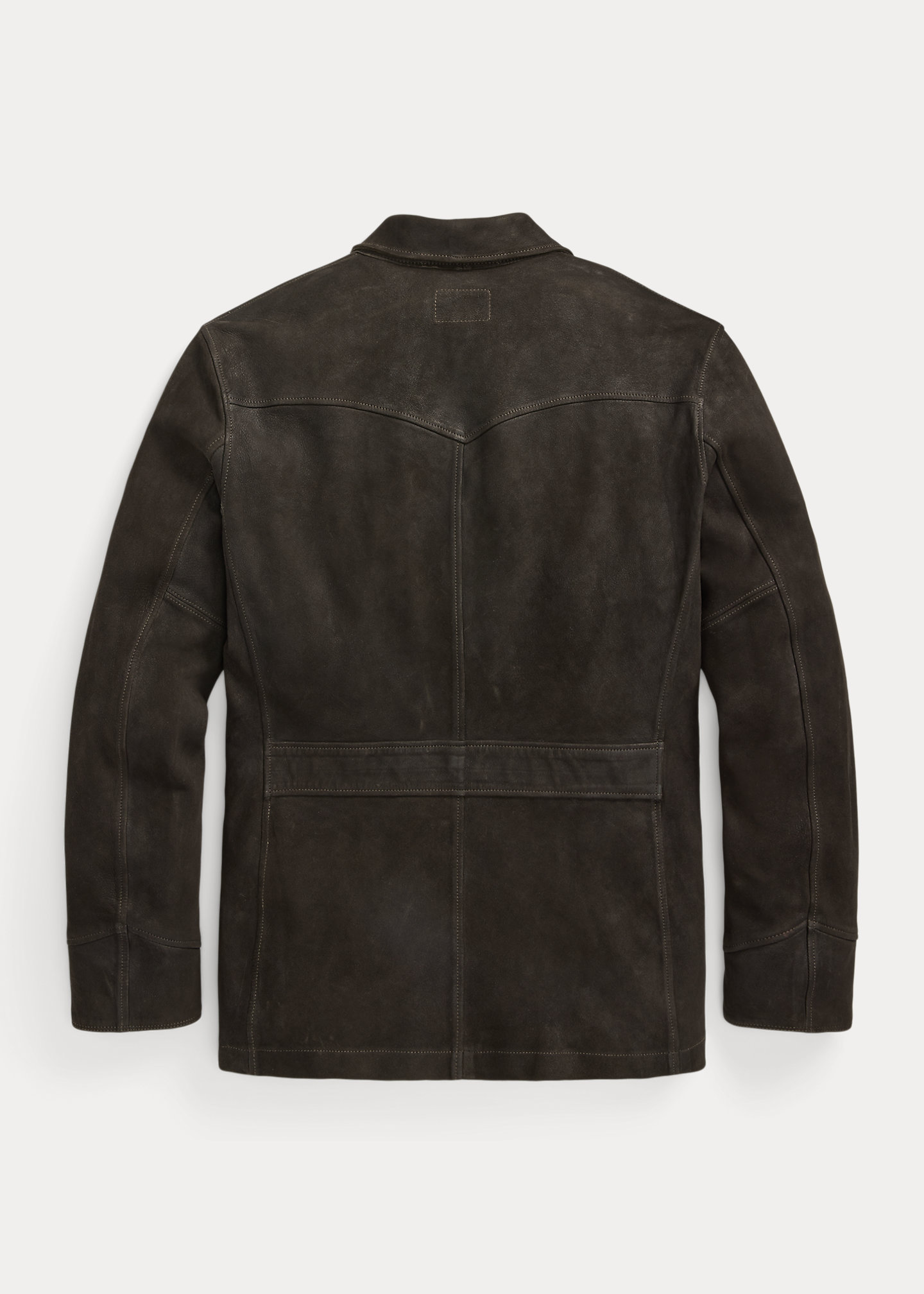 - Single vent. Belt detail at the back waist. Unlined.