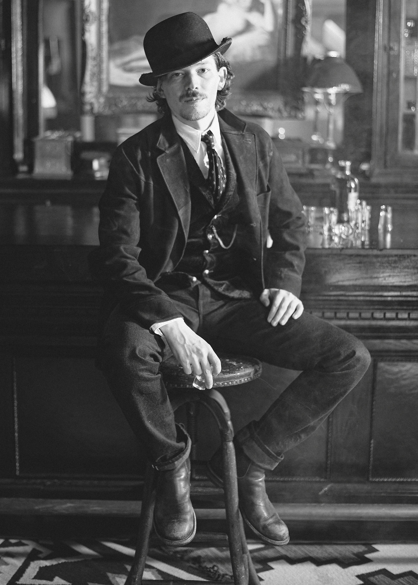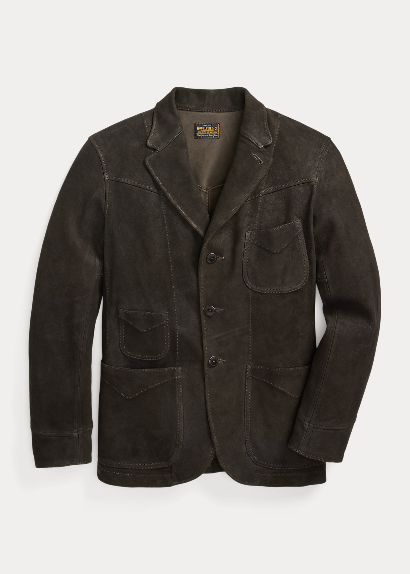 - Notch lapels. Buttonhole at the left lapel. Three-roll-two silhouette. Corozo buttons.
