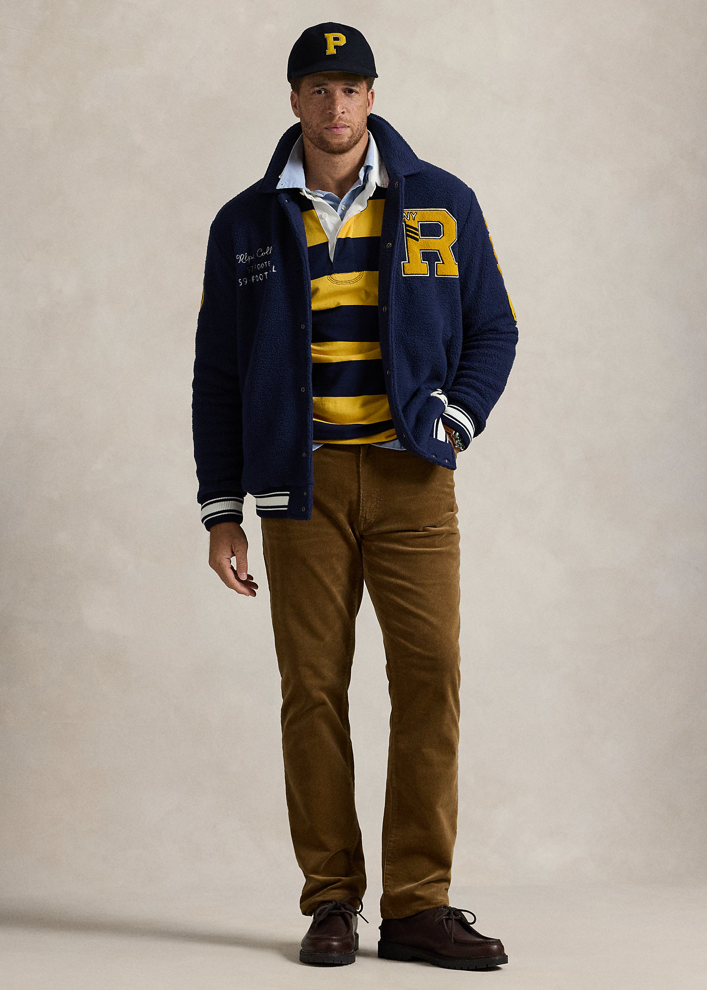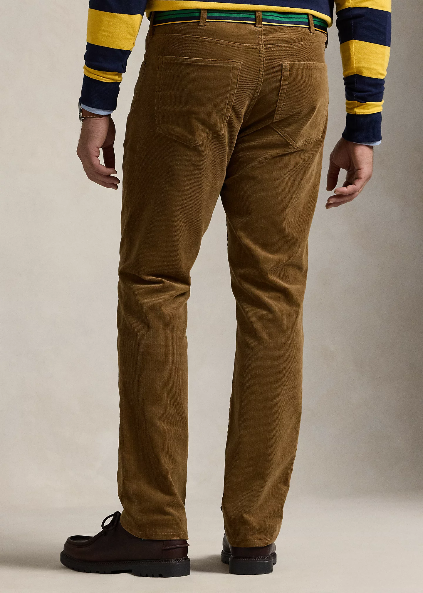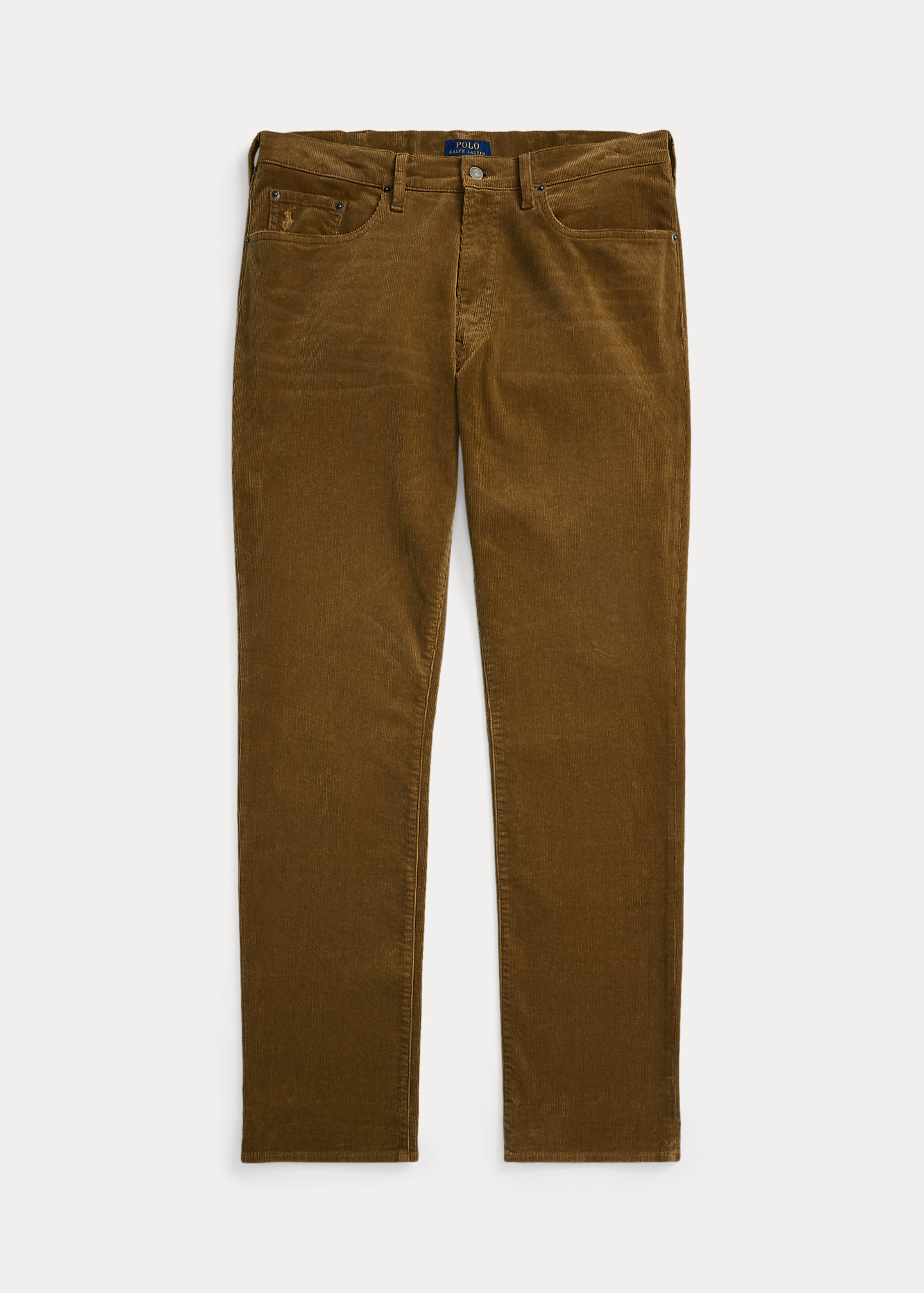 - Five-pocket styling with signature metal rivets. Leather "Polo Ralph Lauren" patch at the back right waist.