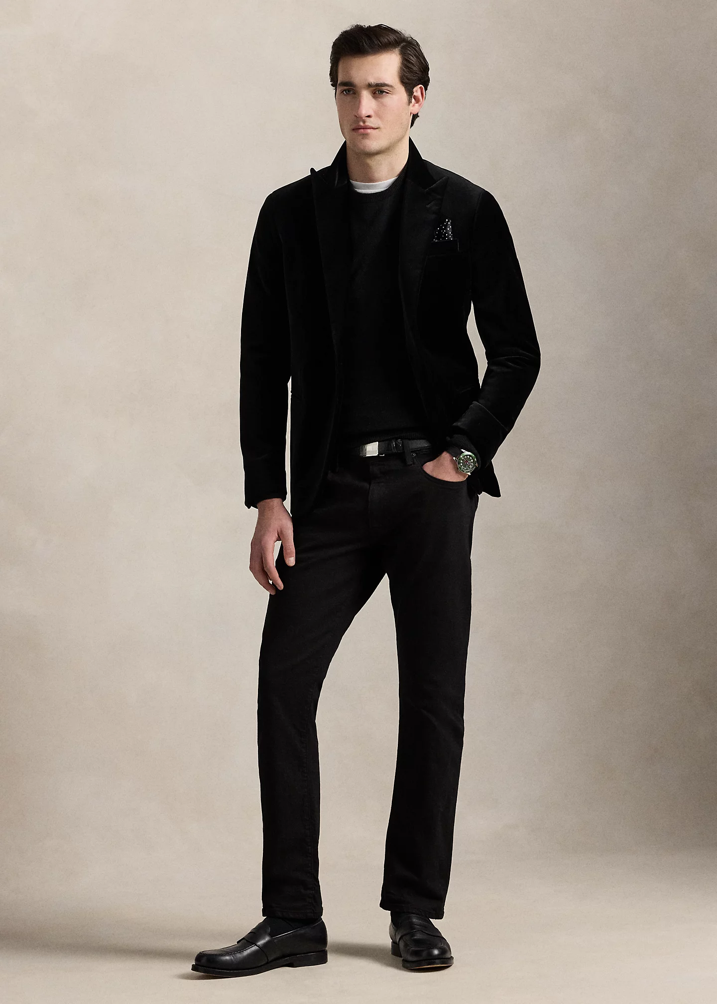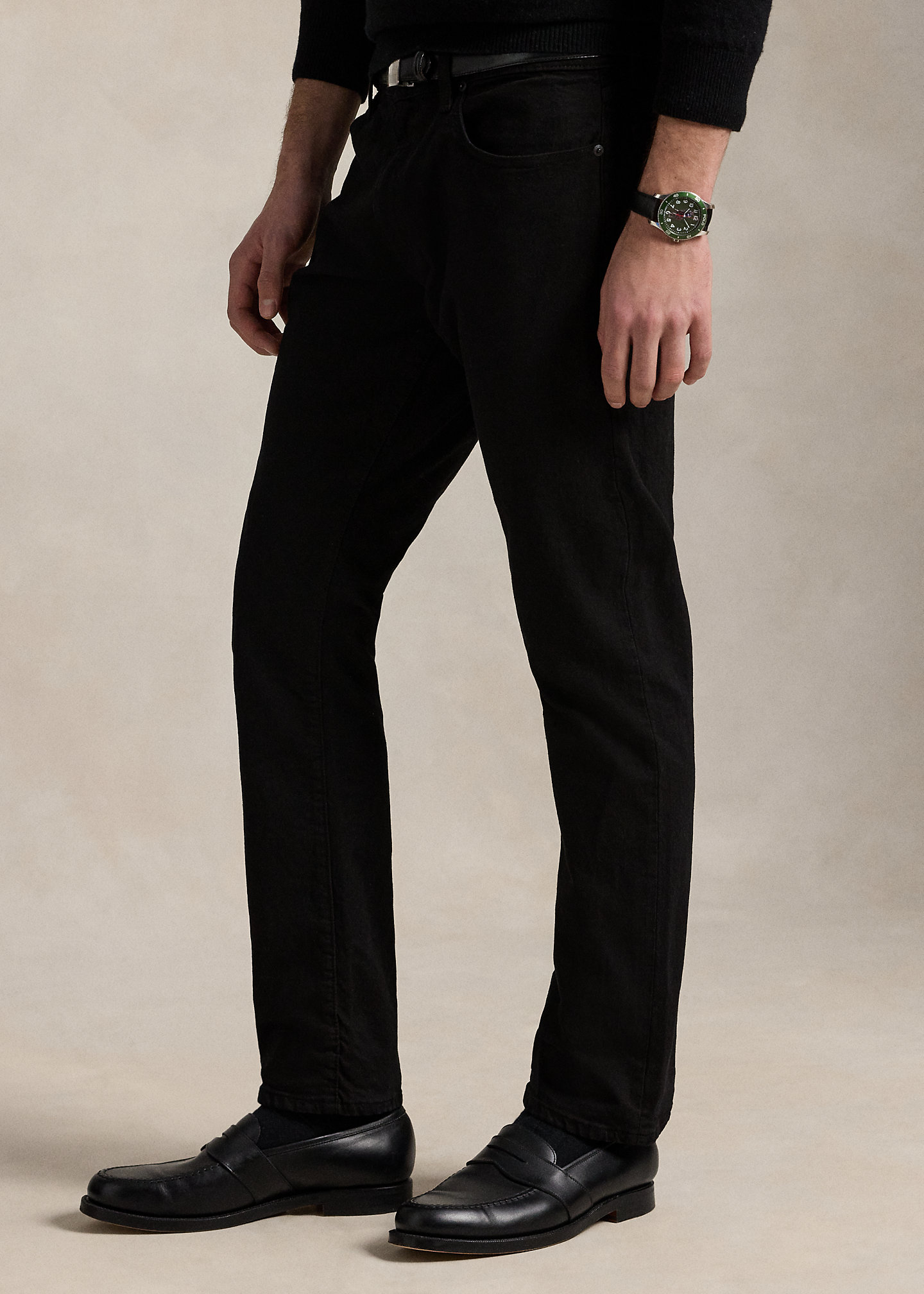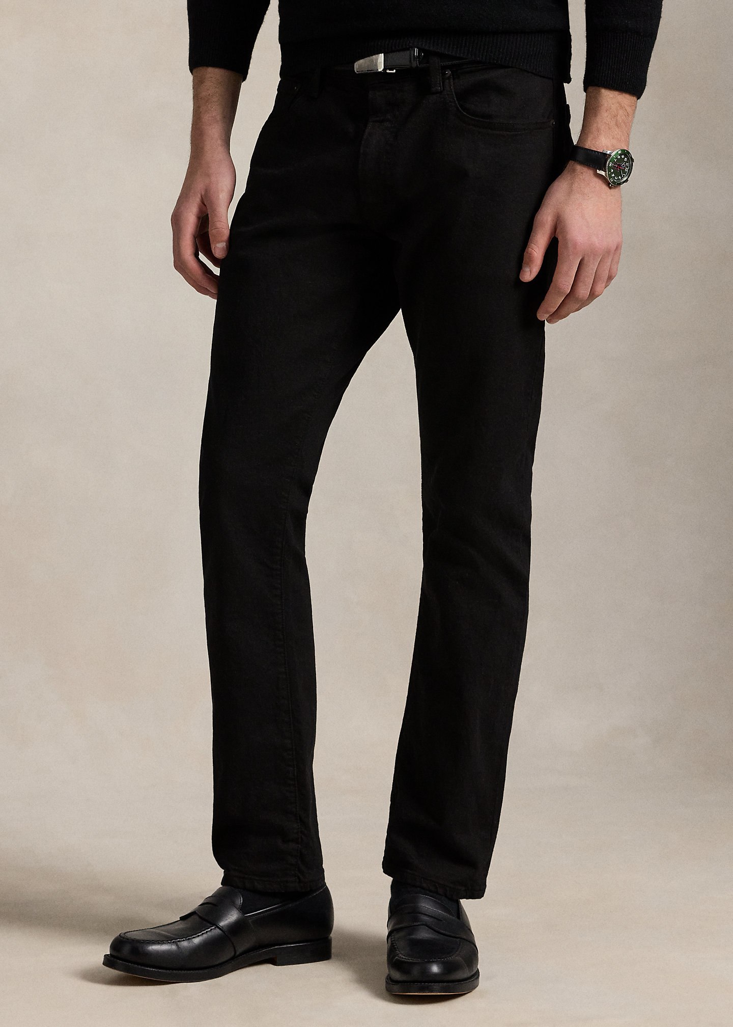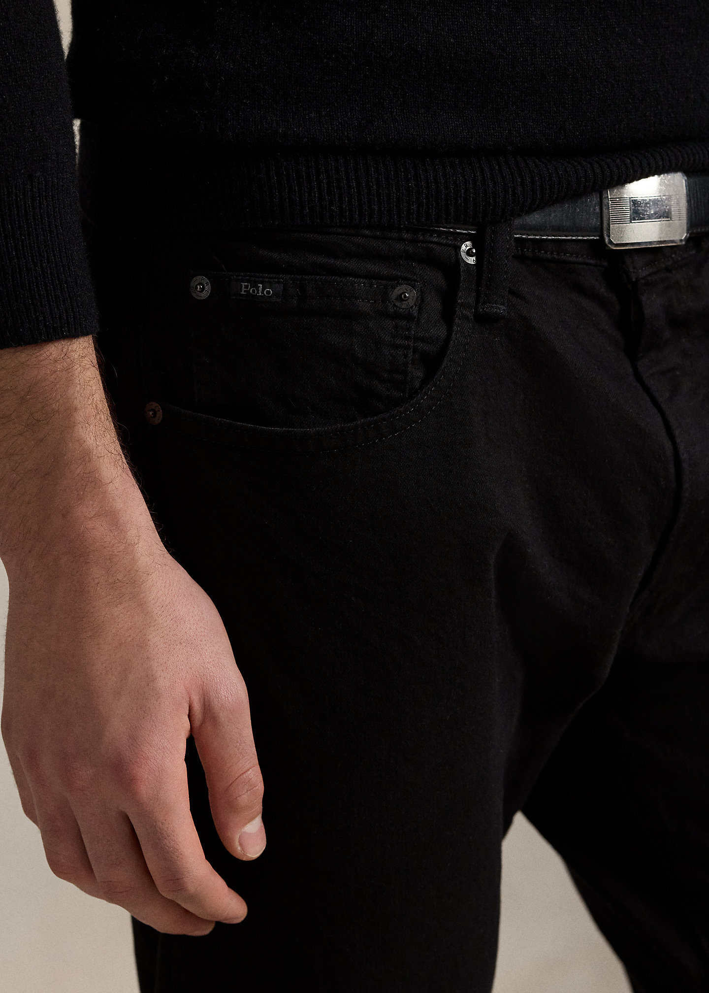 - Five-pocket styling with signature metal rivets. “Polo” label at the coin pocket.