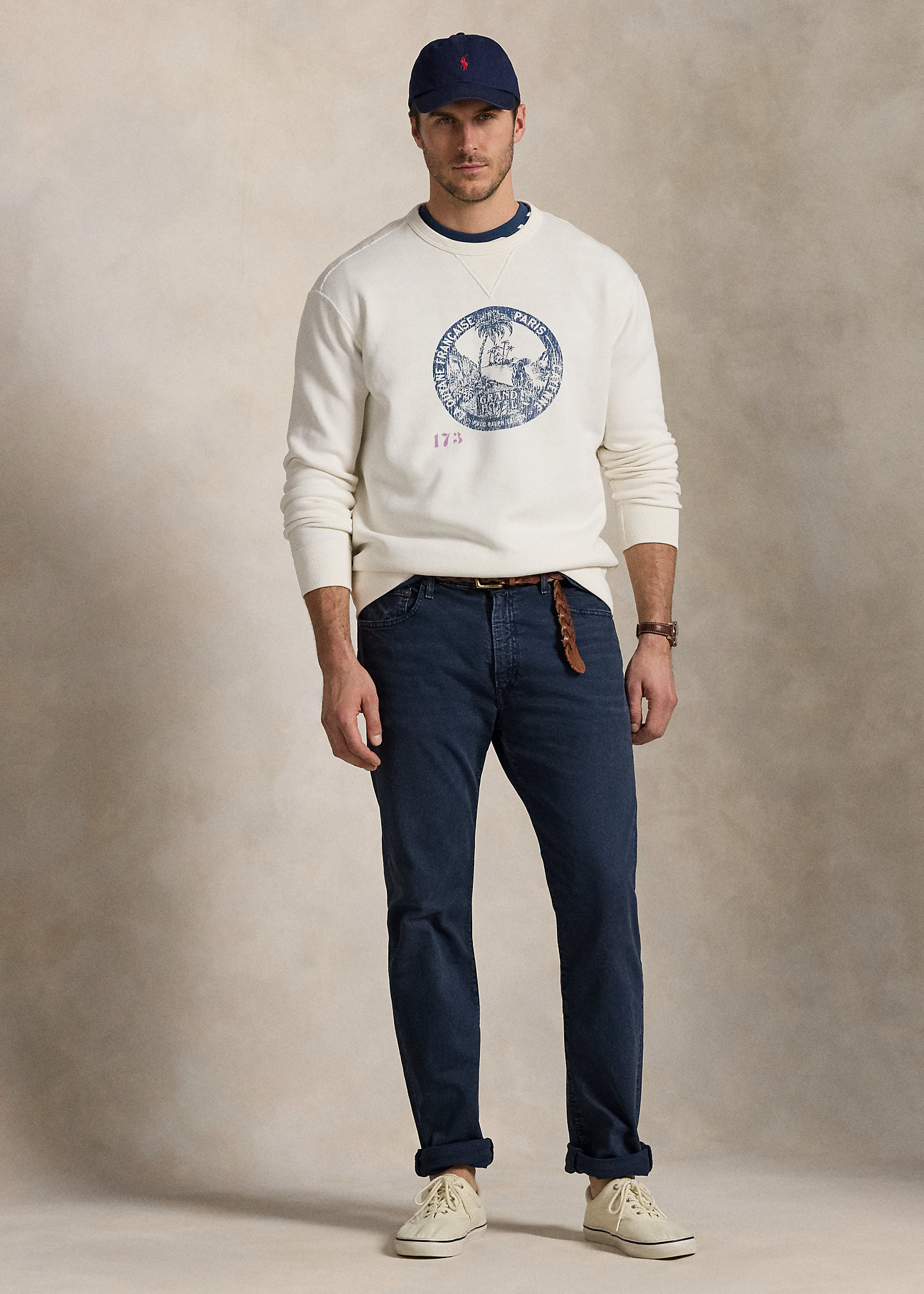 - Belt loops. Zip fly with a signature buttoned closure.