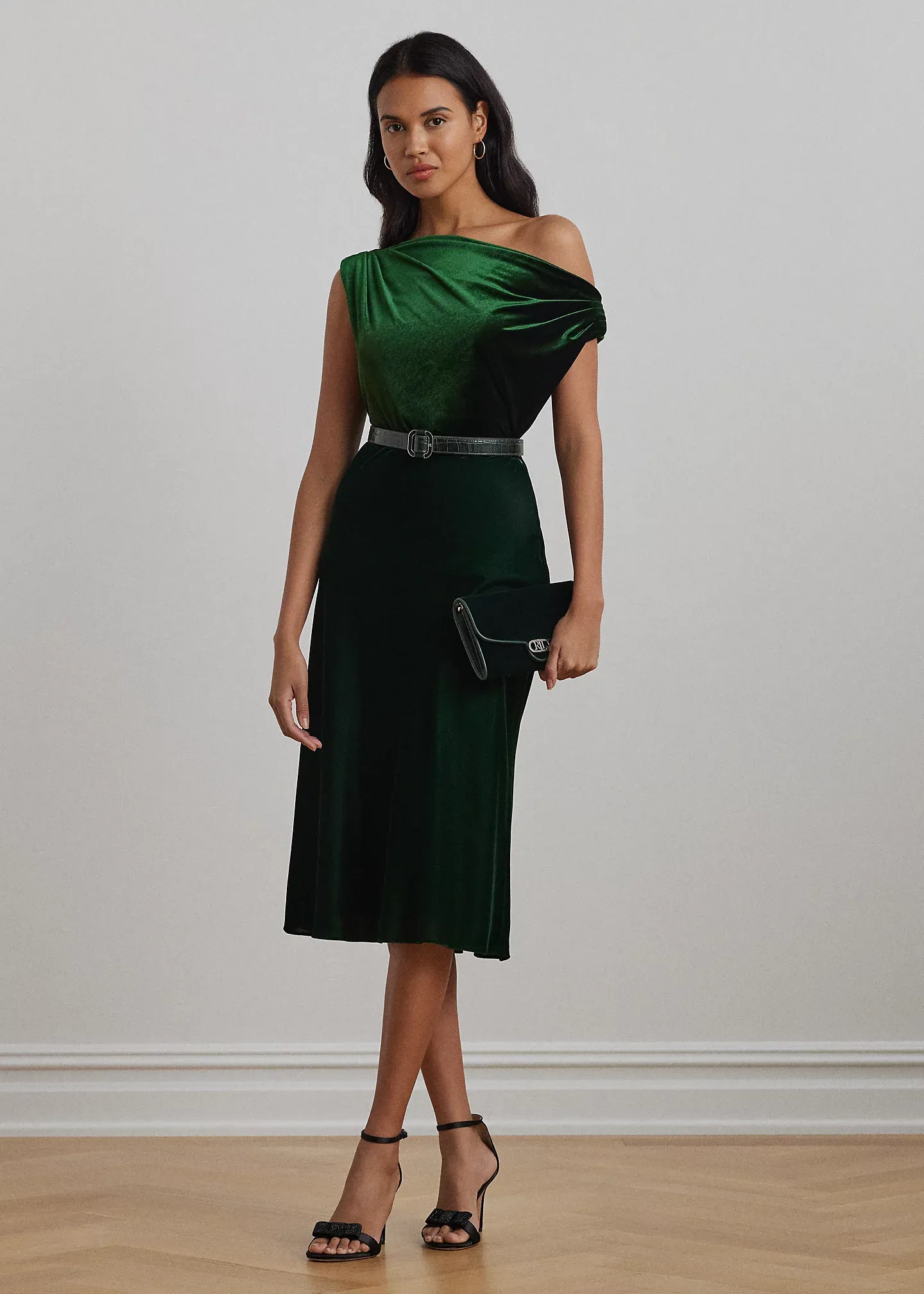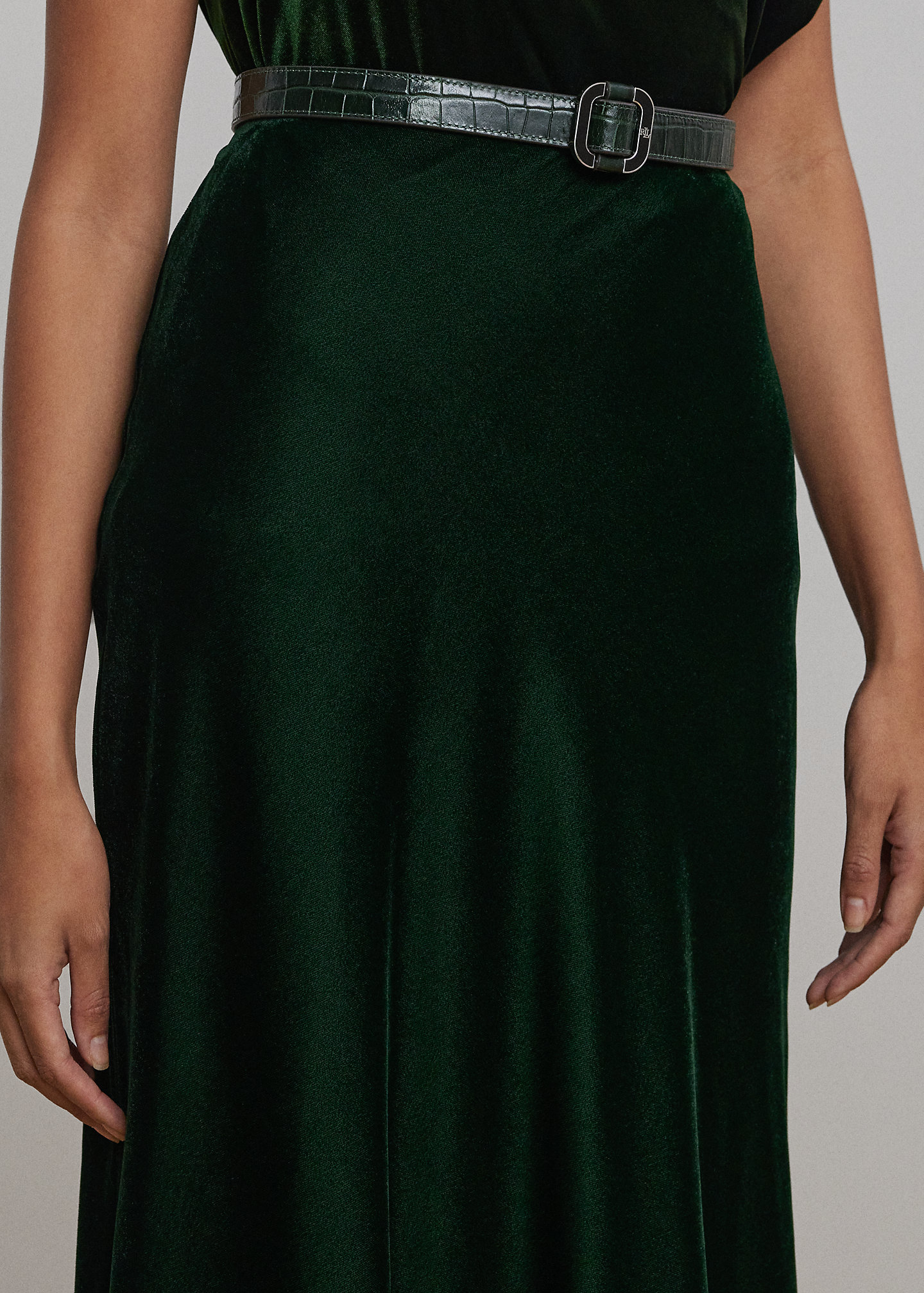 - Concealed left-side-seam zipper with a hook-and-eye closure.