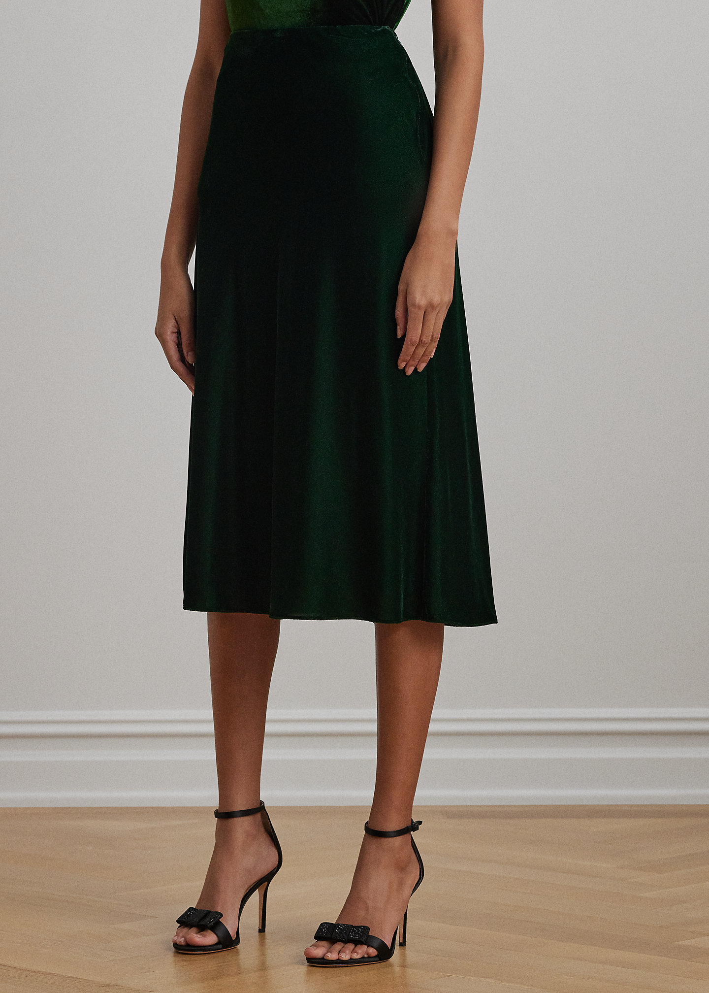 - A-line silhouette. Intended to hit below the knee.