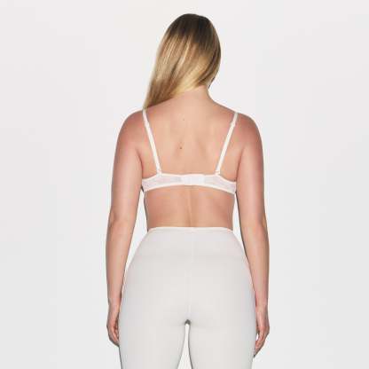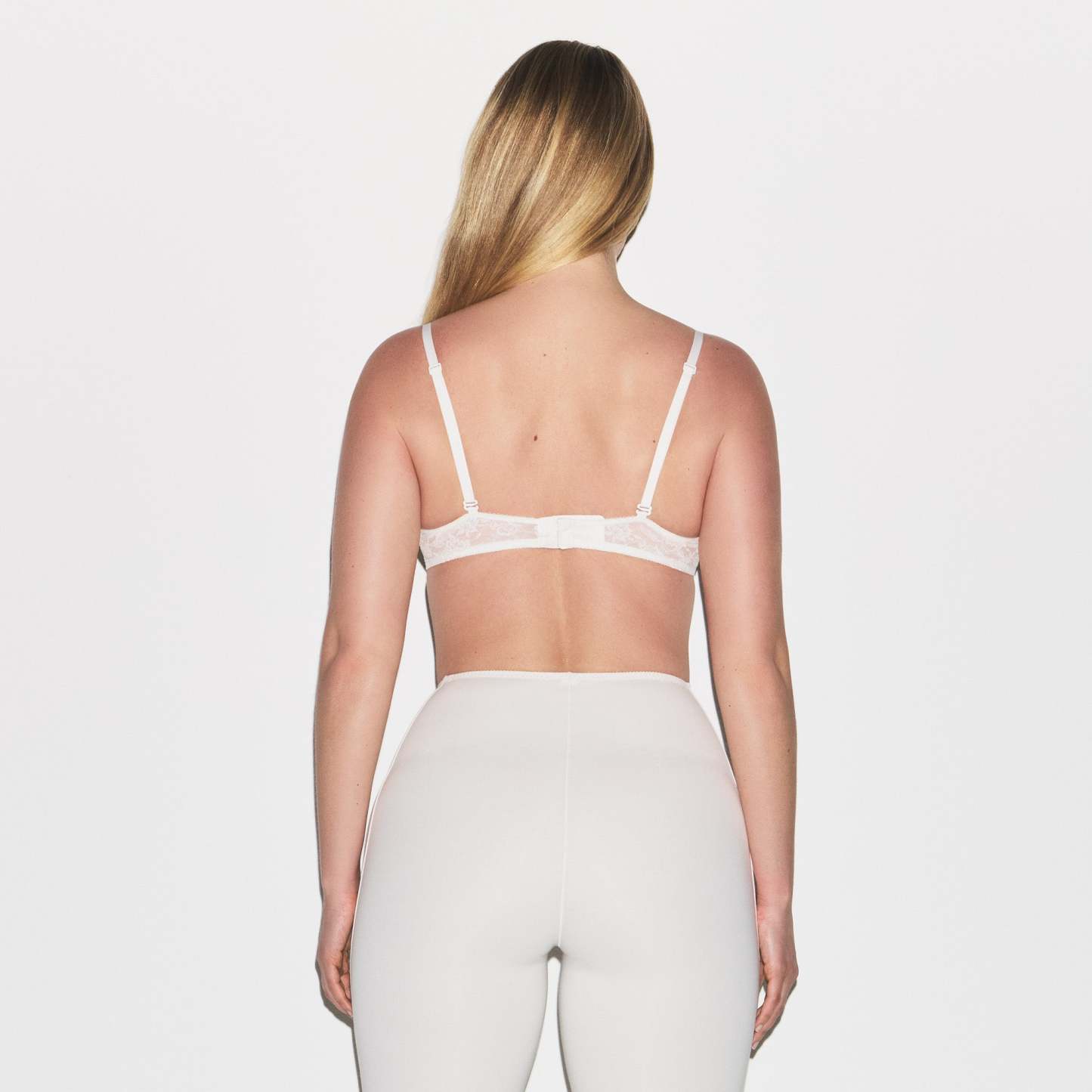 Make a bold, retro statement. This lightly lined bra is made from our feminine, vintage-inspired lace and features daring pointed cups and a supportive underwire. Elevated with picot elastic trim and a center front rosette, this solution is completed with adjustable straps and a hook and eye back closure. Fits true to size.