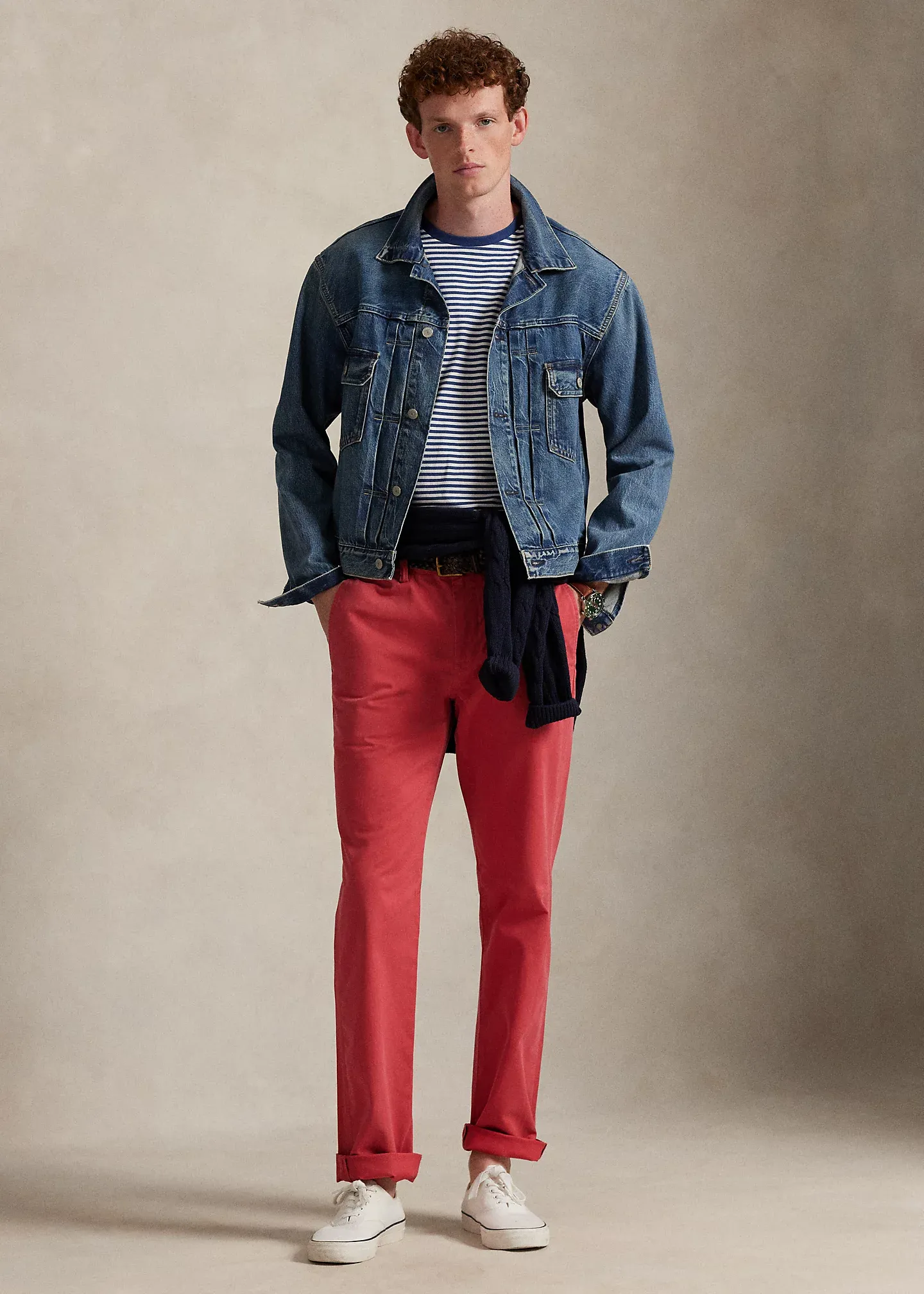 - Stretch Straight Fit: sits low at the waist. Straight through the leg.