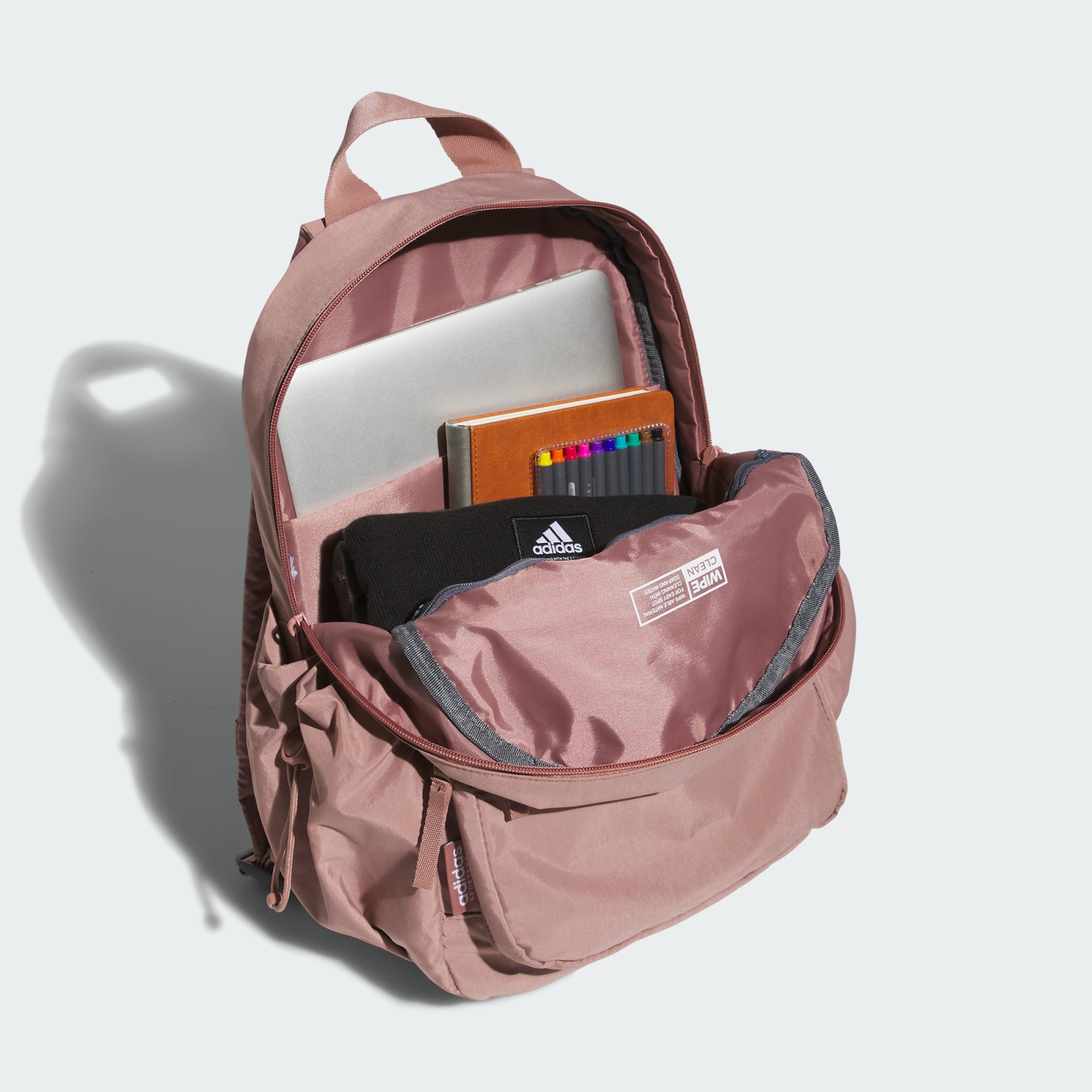 Quick trips, short getaways or whatever you're up to, carry your things in this versatile adidas backpack. Keep things organized and separate with plenty of zip pockets. Use the trolley strap to secure bags together. Get it a little dirty inside? Simply wipe down the lining and be on your way.
