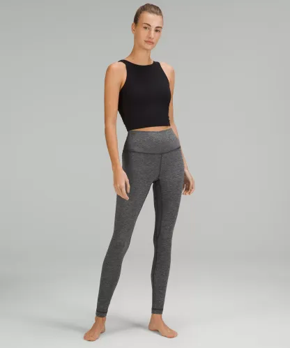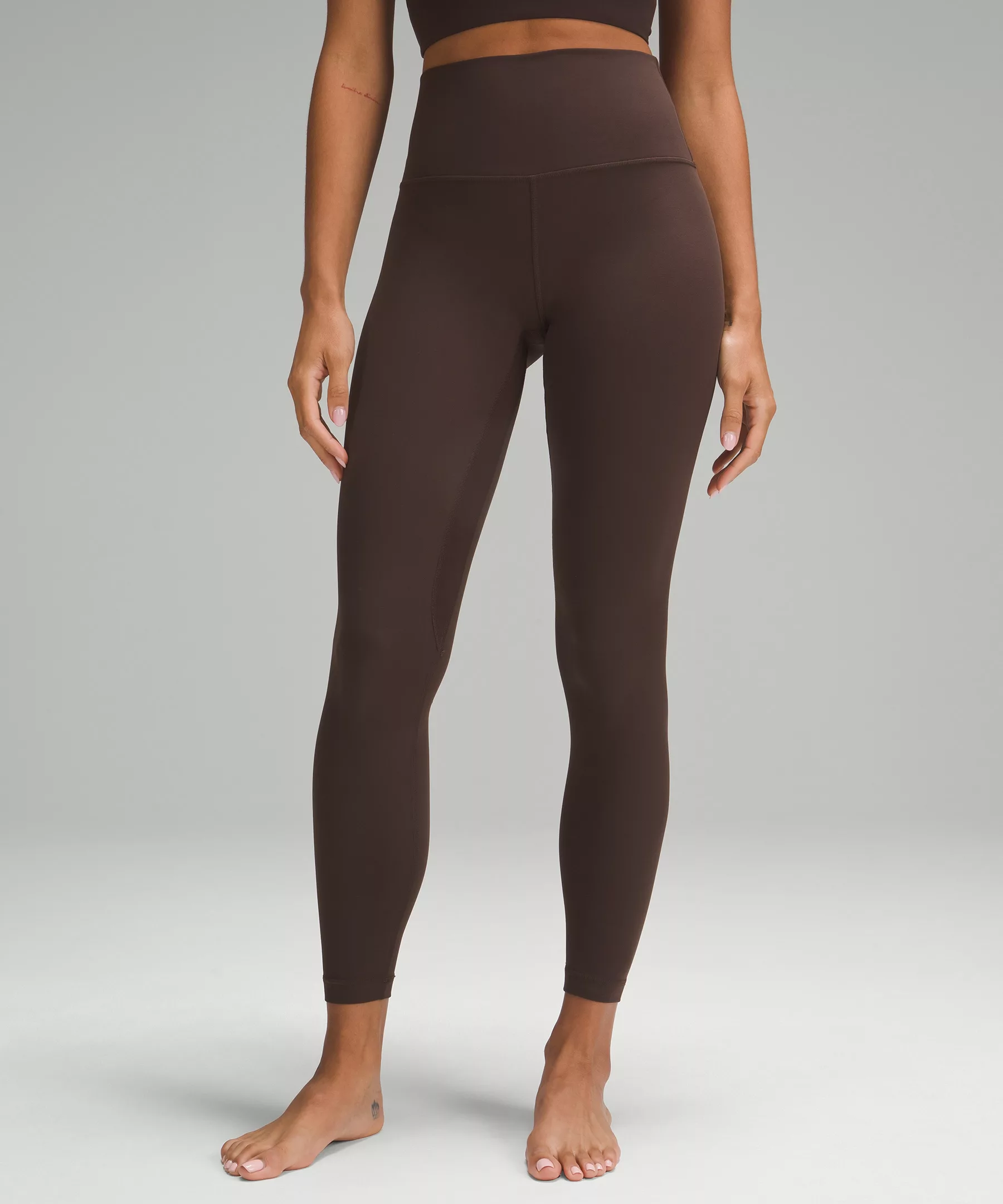A high-rise waistband keeps you covered during forward folds and downward dogs. Our 28" length is intended to sit at your ankle.