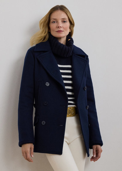 Wool-Blend Twill Peacoat