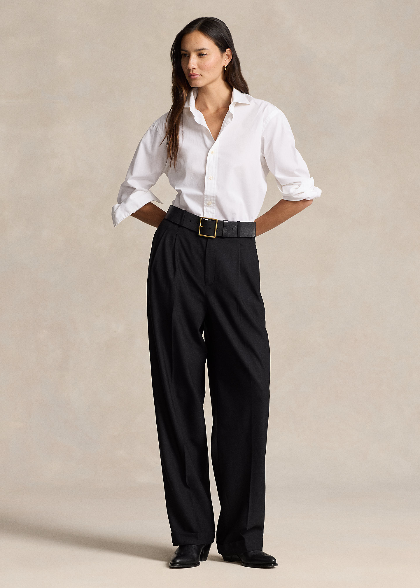 - Mid-rise. Wide-leg silhouette. Intended to hit at the ankle.