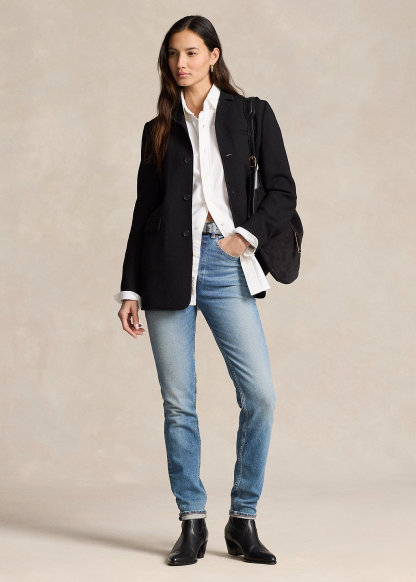 - Straight, slightly slim fit. Intended to hit at the hip.